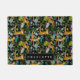 A cute hand drawn illustration of a tropical jungle safari tigers in a jungle featuring exotic floral, leaves, palm and wildflowers. This tropical tiger themed design has a black background which creates a dark moody scene. An ideal design for anyone who loves wild animals, tiger illustrations and tropical themes. Customize this tropical tiger design and make it your own!