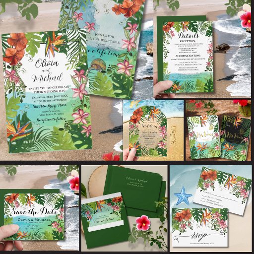 Tropical Vibrant Watercolor Hand Drawn Wedding Setデザイン: Adriana Kurucova