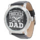 This meaningful wall clock celebrates the esteemed dual role of a truck driver and a father. Set against a black background with a clean white rim, it prominently features a white semi-truck illustration and the text: "SOME PEOPLE CALL ME TRUCKER THE MOST IMPORTANT CALL ME DAD". It's a perfect gift to honor a dedicated trucker dad. The design tool can also be used to add custom text if you want your name or company on this clock. You can customize the color of the frame to any color you desire by going into the design tool.