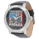 This patriotic wall clock powerfully celebrates the vital role of truck drivers in the United States. Against a black background framed by a deep blue rim, it features a blue semi-truck prominently positioned in front of a distressed American flag. The words "TRUCKERS MOVE AMERICA" are boldly displayed in white, curved around the top and bottom of the clock face, emphasizing the essential contribution of these professionals. White stars flank the word "MOVE," adding to the patriotic design. It's a perfect gift to honor the dedication of American truck drivers. The design tool can also be used to add custom text if you want your name or company on this clock. You can customize the color of the frame to any color you desire by going into the design tool.