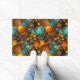 Turquoise Brown Abstract Fractal Pattern ドアマット