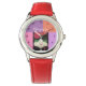 Tuxedo猫顔白黒名イラストレーション赤 腕時計