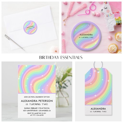 Two Groovy Retro Pastel Rainbow 2nd Birthday ギフトタグ