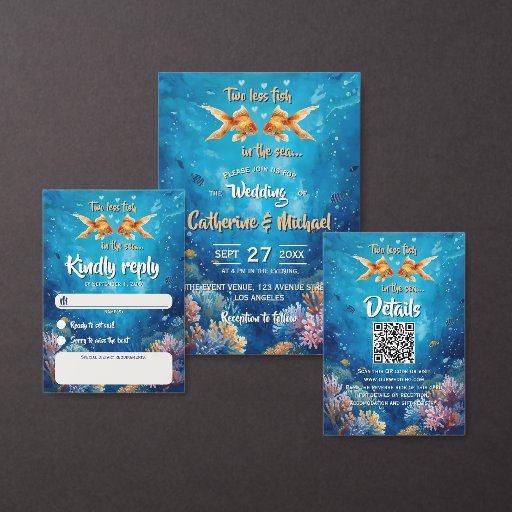 Two Less Fish In The Sea Underwater Wedding 招待状