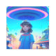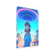 UFOの下の街で活躍するアニメガール メタルプリント