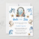 Featuring adorable dolphins, seashells, and a dreamy underwater window scene, this design sets the perfect tone for a joyful gathering in honor of a new arrival.
