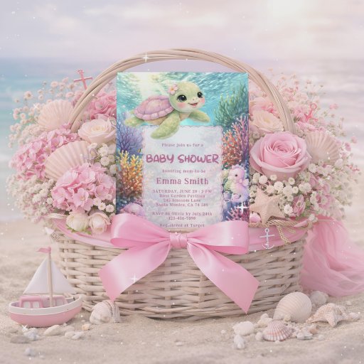 Under the Sea Turtle Baby Shower Thank You Card. Matching items available.