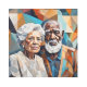 This geometric-style piece portrays an elderly couple with love and serenity, using colorful triangles in warm and cool tones. The interwoven shapes symbolize a shared life, while vibrant colors highlight the strength and harmony of their connection over time.