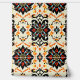 Transform your space with this stunning and intricate folk art wallpaper. Featuring a symmetrical repeating pattern of stylized floral medallions and ornate flourishes, this design is reminiscent of traditional damask, Spanish tiles, and bohemian textiles. A vibrant color palette of fiery red, bold orange, and cool turquoise pops against the dramatic black details and warm cream background. Perfect for creating an eye-catching accent wall or decorating an entire room, this wallpaper brings an energetic, artistic, and worldly feel to any interior.