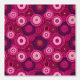 This vibrant crochet-inspired pattern bursts with layered circular motifs that resemble blooming flowers stitched in rich shades of magenta, fuchsia, bubblegum pink, plum, and raspberry. Each rosette is formed from tightly looped and textured yarn strokes, creating concentric rings of intricate detail that ripple outward like handcrafted mandalas. Pops of chartreuse appear in select centers, adding a playful contrast to the predominantly pink palette. The seamless arrangement of overlapping circles gives the design energetic movement and a lively, boho-textile feel.