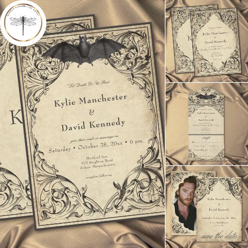 Vintage Bat Until Death Black Parchment Wedding セーブザデート