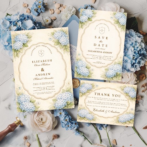 Vintage Blue Hydrangea Garden Wedding 招待状