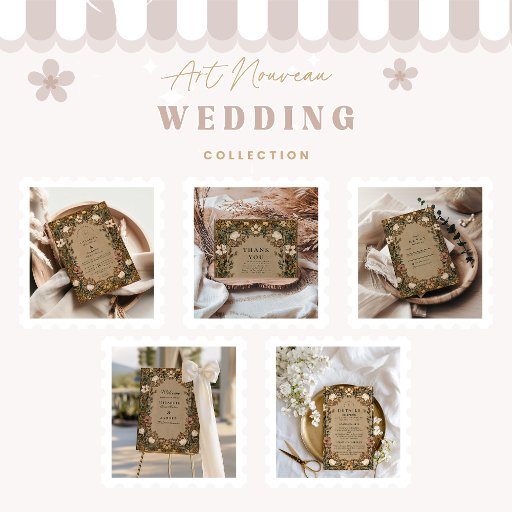 Celebrate your love with timeless elegance. This vintage-inspired wedding design features delicate ivory and blush florals intertwined with golden vines and warm botanical details. The intricate frame and earthy background create a romantic, nature-inspired look — perfect for rustic, garden, or fall weddings. Personalize easily with your own names, date, and ceremony details.