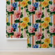 This vintage-inspired floral stripe wallpaper features hand-painted blooms layered over soft vertical stripes for a timeless, boutique look. Bold yellow dahlias, blush pink florals, and rich blue flowers are balanced with lush green leaves, creating a pattern that feels cheerful, artistic, and refined.