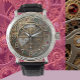 Vintage industrial, Steampunk Watch styling with easily visible large numbers. Original watch face featuring gold, diamonds, emeralds, ruby gem stones. (watch background is printed / doesn't contain actual gems).