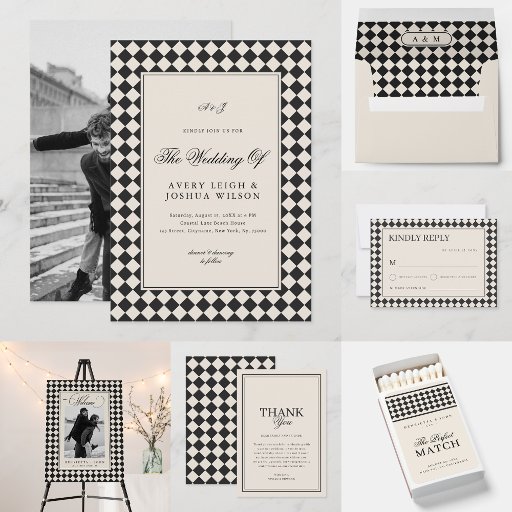 This vintage old money preppy checkered RSVP card features a refined retro checker pattern with an understated, editorial look. The neutral palette and elegant typography create a polished, timeless aesthetic, classic, grandmillennial, and subtly retro. Designed to coordinate with the full Checkered Old Money wedding suite, it brings a cohesive, elevated feel to your stationery set.