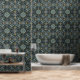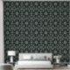 This wallpaper features an intricate vintage Persian medallion pattern in rich shades of blue, gold, and teal on a deep navy background. The ornate, symmetrical design is inspired by traditional Persian rugs, adding a touch of timeless elegance and luxury to any room. Perfect for creating a statement wall or enhancing your home with classic, artistic style.