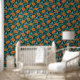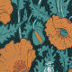 Vintage Poppy in teal orange black 壁紙