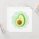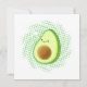背景に効果を適用した漫画のスタイル動揺してアボカド。アボカドとヘルシーな食べ物を愛する大人と子供のためのギフトアイディア。カードは空白の手書きメッセージの背面にある。