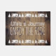rvers、冒険の旅行者、放浪者、退職したなパーソナライズなカップルおよびキャンピングカーのための素朴なRVのキャンプの装飾のギフトは動揺してな木製の一見の玄関マット「生命です旅行楽しみます乗車」を、手書きのおよび押された一見で、白い手紙読みます。 上のかわいく、白いボーダーおよびヴィンテージのmotorhome RVsおよび松の木の列の底を使って。 素朴で、動揺してな納屋木板の茶色の背景に対して。 お母さんおよびパパのためのおもしろいの退職のギフト。 RVの前に家庭で右があって下さい。