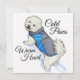 The design depicts a bichon in the snow with a warm jacket and warm heart with winter wishes.