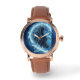 Luxury rose gold vintage watch with a brown leather strap, featuring half of a majestic eagle heart. A sophisticated symbol of loyalty and eternal love for men.