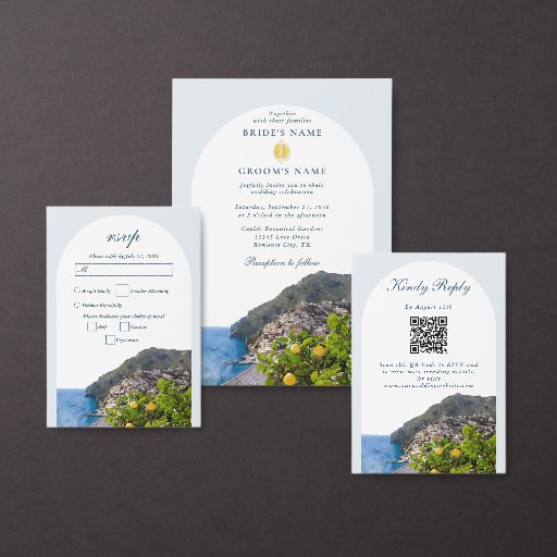 Watercolor Amalfi Coast Arch Italy Lemons Wedding デザイン: iDove Design