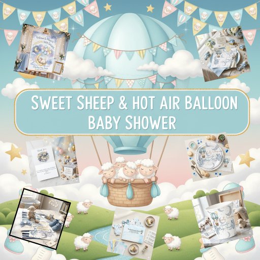 Elevate your party landscape with these charming, custom baby shower Thank You Card. Featuring a whimsical hand-painted watercolor sheep in a hot air balloon, this design is accented by soft blue balloons and a dreamy celestial pattern of crescent moons and twinkling stars.