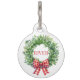 This Christmas holiday dog pet tag features a green wreath with red gingham bow. Personalize with your choice of special text on the front and back. Perfect for holiday party favors and gift bags.