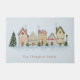Watercolor Winter Christmas Village Family Name ドアマット