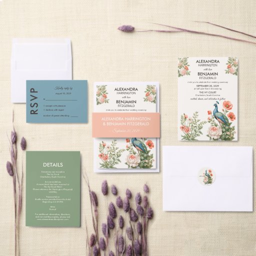Wedding Peacock Botanical | Vintage Floral Art 招待状