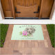 Weimaraner犬の花柄の歓迎家族 ドアマット