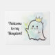 Cute doormat with a little ghost king and the text: welcome to my kingdom. Text is adjustable.