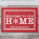 Beautiful Christmas design for your home's entrance mat with the phrase "WELCOME TO OUR HOME" with Christmas motifs and customizable color so that your home looks wonderful this Christmas season, the design is personalized with your family's name.