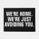 A humorous and relatable fiber doormat featuring the cheeky phrase "We're Home. We're Just Avoiding You." Perfect for adding a playful touch to your entryway and letting visitors know you value your personal space with a smile. Durable and welcoming for any home or office entrance.