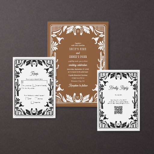 nashville austin texascasual bbq wedding rodeo themerustic ranch farm barncowboy cowgirl wedding stationerywild west cow skull horseshoeblack whitewesterncowboy cowgirl weddingmodern floral cactuswedding menu cards