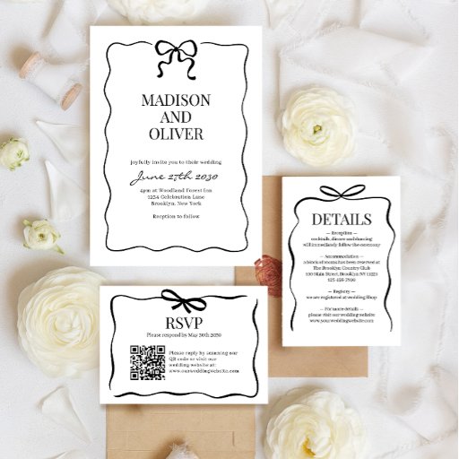 Whimsical Black Bow Tie Wedding QR Code Rsvp