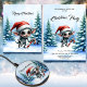 Whimsical Christmas Elf with Candy Cane. Bring holiday magic to life with this unique Christmas artwork: a whimsical, grey-skinned elf wearing a classic red and white Santa hat. With big, expressive eyes, he holds a striped candy cane staff against a snowy winter landscape filled with evergreen trees. This festive and magical design captures the joyful spirit of Christmas.