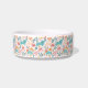 Discover our stylish cat bowl featuring a charming pattern of stylized cats and flowers in modern pastel hues. The design showcases four adorable cats—blue with white spots, a creamy orange reaching upwards, a pink with white accents, and a peachy cat in a textured blue sweater—set against a light beige background. Accentuated with vibrant flowers, dark green leaves, and playful yellow, pink, and red dots, this bowl combines contemporary elegance with whimsical feline charm. Perfect for cat lovers seeking functional art with a touch of playful sophistication.