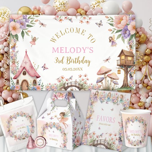 Whimsical Flower Fairy 3rd birthday Banner 横断幕