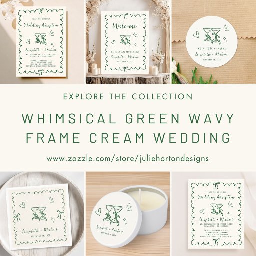 Whimsical Green Wavy Frame Cream Wedding スクエアシールWhimsical Green Wavy Frame Cream Wedding スクエアシール (正面)Whimsical Green Wavy Frame Cream Wedding スクエアシール (シート)