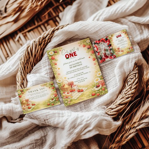 A cheerful garden scene filled with daisies, soft greenery, and playful ladybugs sets the tone for a sweet first birthday celebration. This design blends storybook charm with a warm meadow palette, creating a timeless look that feels joyful, gentle, and photo-ready. Perfect for a spring or summer celebration, with elegant typography and a bright, nature-inspired frame that highlights your party details beautifully.