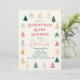 Celebrate the joy of the season with this Christmas Baby Shower Invitation! Designed with playful pink, gold, and green holiday trees on a soft cream background, this modern invitation adds a festive yet sweet touch to your celebration. The mix of retro fonts and whimsical tree illustrations creates a cheerful holiday vibe — perfect for winter baby showers or Christmas-themed gatherings honoring the mom-to-be.
