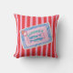 Bring a smile to your face with this whimsical throw pillow featuring a charming illustration of a vintage sardine tin. The design showcases two adorable blue fish peeking out from their pastel blue packaging, accented with playful stars. This graphic design is printed on a vibrant background of alternating red and light pink stripes, creating a fun and energetic look. It’s an ideal accent for a kitchen, den, or any room that could use a touch of playful, retro-inspired decor. This pillow is a fantastic way to express your unique style and add a dash of unexpected charm to your living space.