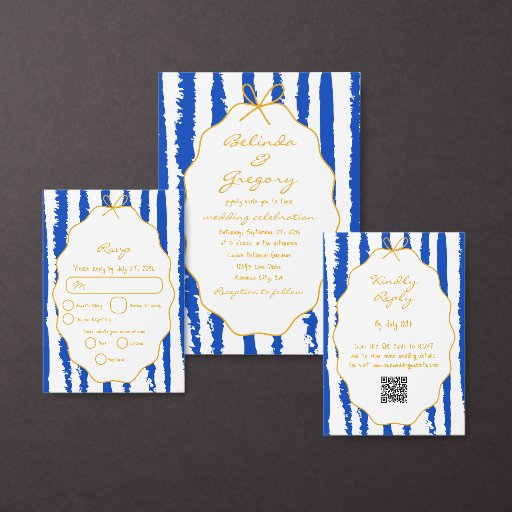 Whimsical Stripes Handwritten Painted Wedding セーブザデート
