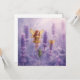 Among blooming lavender fields, three magical beings gather — a golden-winged fairy, a playful sprite, and a leafy companion.