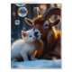 Send a heartwarming message with this enchanting postcard featuring an unlikely winter friendship! A majestic, horned goat gently nuzzles a tiny, fluffy white kitten in a serene snowy landscape, illuminated by soft light and playful, iridescent bubbles. This delightful image captures a moment of pure connection and gentle affection, perfect for animal lovers and spreading joy