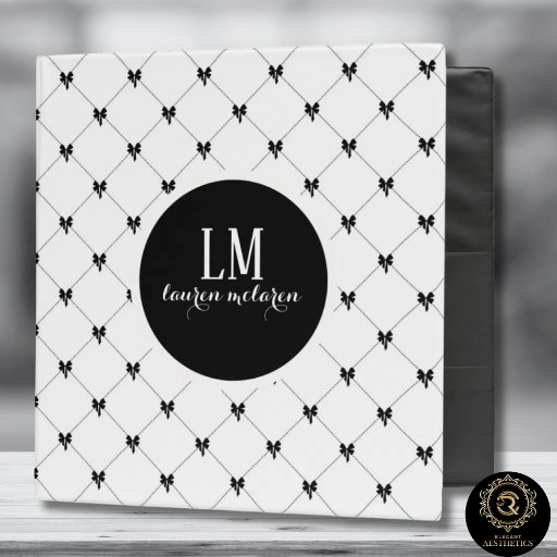 White & Black Bow Monogram Thank You Card エンクロージャーカード