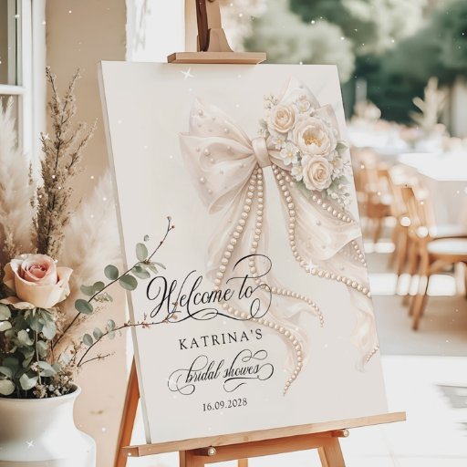 White Pearl Bow Floral Bridal Showerデザイン: Katsiaryna Lukyanava