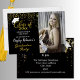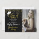 Graduation party invitation in white on black and gold colors. Created with white cap, white balloons and faux gold glitter, with space for your own photo. All text front and back already formatted and ready for your own text details. Other colors available in this same design. Photo credit: Pixabay image by Lorri Lang